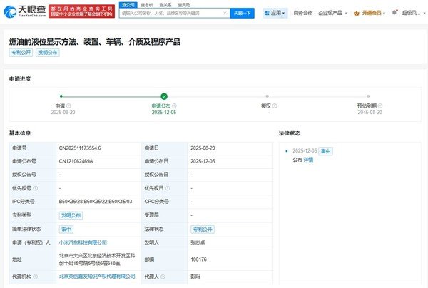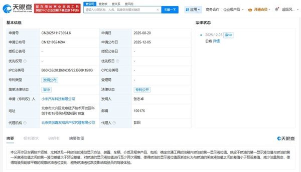 小米汽车自宣布造车以来,已在车辆智能化、人机交互等领域布局多项专利。此次公布的燃油液位显示专利,虽看似聚焦于传统燃油系统,但也反映出小米在车辆细节体验方面的技术积累与用户体验导向的研发思路。
